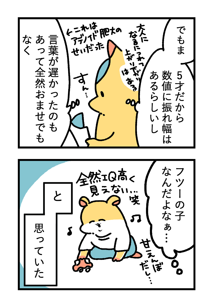「自分の子のIQが高い」って、すごーく喜ばしい事に思えるかも知れませんが、私は親からずっと「出来ない子」のレッテルを貼られていたのもあり正直コンプレックスを刺激されるシーンも多々あったんですよね。